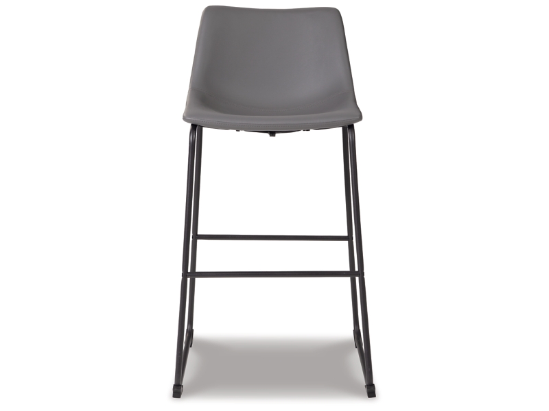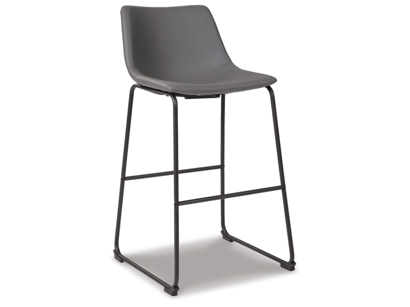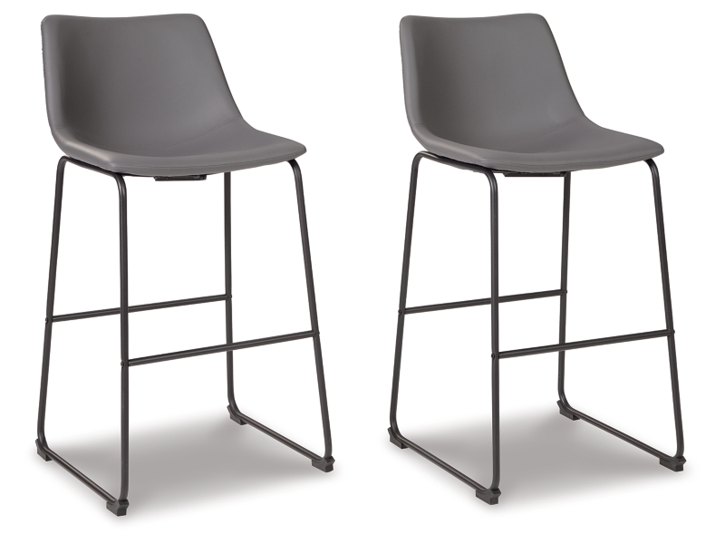 With its distinctive contoured bucket seat and tubular metal base, this set of 2 bar stools serves up a fresh twist on mid-century inspired style. Chic gray faux leather upholstery adds to the aesthetic. What a timeless look for eat-in kitchens and casually cool dining rooms.