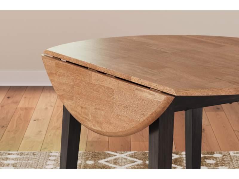 Complement your home’s simply relaxed sensibility with this drop-leaf dining table. A handsome dark brown hue offers a chic contrast to the natural wood tone, for a neutral look that vibes with a variety of aesthetics. When guests drop by, convert it from a space-saving two-seater to a larger table with the two drop leaves. Whether you're sipping your morning coffee, settling in for dinner or working from home, this table is smartly designed for everyday comfort and style.