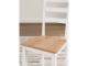 Casual Lifestyle design. Made with Mango veneer, MDF substrate and Rubberwood solids. Two-tone finish contrasts a light natural Mango wood finish with a clean white. Also available in Mango/brown [D396-XX], Mango/blue [D399-XX] or Mango/green [D401-XX]. Tables feature a butcherblock veneer top. D398-223/-325 sets feature a timeless tapered leg design with a through tennon look. D398-15 drop-leaf table is 42" round with two 8.5" leaves that allow the table to convert from a space saving 2-person table to a larger 4-person table. D398-13 counter height table has storage shelves conveniently located on one end with a sturdy stretcher to add support to the tapered legs on the other end. The chairs and stools in this collection feature a casual ladder back design and a 2-tone finish with a contoured mango veneer seat to match the table tops. All chairs and stools in this collection have adjustable levelers.