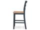 Casual Lifestyle design. Made with Mango veneer, MDF substrate and Rubberwood solids. Two-tone finish contrasts a light natural Mango wood finish with a dark slate blue. Also available in Mango/brown [D396-XX], Mango/white [D398-XX] or Mango/green [D401-XX]. Tables feature a butcherblock veneer top. D399-223/-325 sets feature a timeless tapered leg design with a through tennon look. D399-15 drop-leaf table is 42" round with two 8.5" leaves that allow the table to convert from a space saving 2-person table to a larger 4-person table. D399-13 counter height table has storage shelves conveniently located on one end with a sturdy stretcher to add support to the tapered legs on the other end. The chairs and stools in this collection feature a casual ladder back design and a 2-tone finish with a contoured mango veneer seat to match the table tops. All chairs and stools in this collection have adjustable levelers.