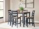 - Includes counter height dining table and 4 bar stools