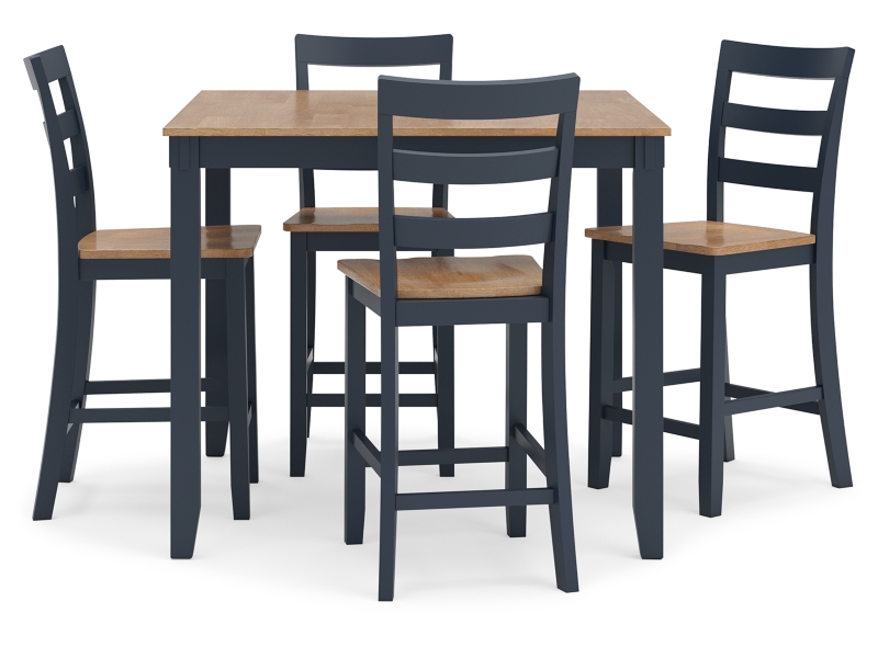 Complement your home’s simply relaxed sensibility with this counter height dining table and bar stools. A dark blue hue offers a chic contrast to the natural wood tone, for a casual look that vibes with a variety of aesthetics. Whether you're sipping your morning coffee, settling in for dinner or working from home, this set is smartly designed for everyday comfort and style.