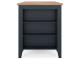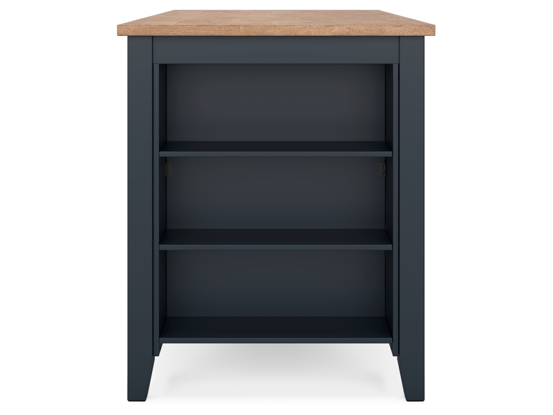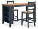 Casual Lifestyle design. Made with Mango veneer, MDF substrate and Rubberwood solids. Two-tone finish contrasts a light natural Mango wood finish with a dark slate blue. Also available in Mango/brown [D396-XX], Mango/white [D398-XX] or Mango/green [D401-XX]. Tables feature a butcherblock veneer top. D399-223/-325 sets feature a timeless tapered leg design with a through tennon look. D399-15 drop-leaf table is 42" round with two 8.5" leaves that allow the table to convert from a space saving 2-person table to a larger 4-person table. D399-13 counter height table has storage shelves conveniently located on one end with a sturdy stretcher to add support to the tapered legs on the other end. The chairs and stools in this collection feature a casual ladder back design and a 2-tone finish with a contoured mango veneer seat to match the table tops. All chairs and stools in this collection have adjustable levelers.