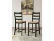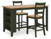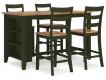 Casual Lifestyle design. Made with Mango veneer, MDF substrate and Rubberwood solids. Two-tone finish contrasts a light natural Mango wood finish with a casual green. Also available in Mango/brown [D396-XX], Mango/white [D398-XX] or Mango/blue [D399-XX]. Tables feature a butcherblock veneer top. D401-223/-325 sets feature a timeless tapered leg design with a through tennon look. D401-15 drop-leaf table is 42" round with two 8.5" leaves that allow the table to convert from a space saving 2-person table to a larger 4-person table. D401-13 counter height table has storage shelves conveniently located on one end with a sturdy stretcher to add support to the tapered legs on the other end. The chairs and stools in this collection feature a casual ladder back design and a 2-tone finish with a contoured mango veneer seat to match the table tops. All chairs and stools in this collection have adjustable levelers.