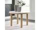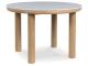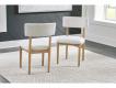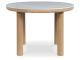Casual lifestyle design with a modern vibe. Made with hardwood solids, decorative melamine laminate, and MDF substrates. Finished in a natural Oak color for a casually relaxed setting. D427-15 round dining table features a contrasting replicated white marble top. D427-02 upholstered dining chair made with solid wood frames with a cushioned seat and back rest covered in a white colored boucle fabric.
