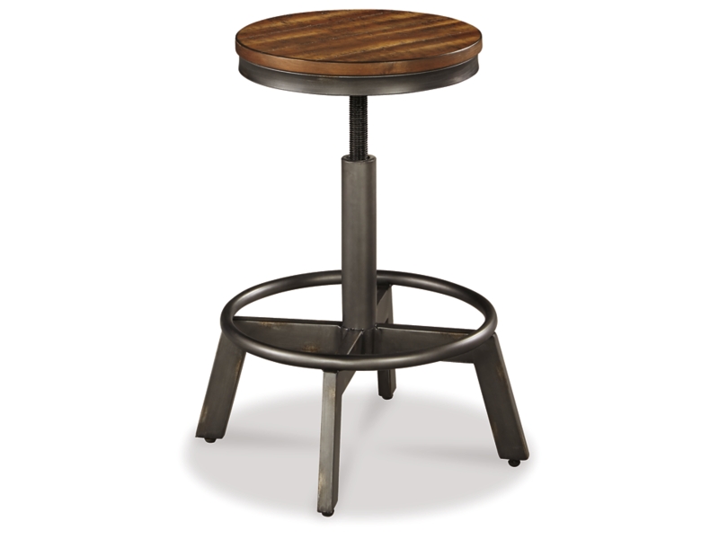 Make your home the hub for cool vibes with this stool. Two-tone finish scheme of distressed warm brown and aged gunmetal is full of urban industrial swagger. Adjustable height is accommodating for you and your guests. Add it behind your sofa with a long counter table for a dapper eating or working space.