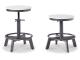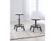 Table and stool seat are constructed with Acacia veneer over engineered wood and mixed solid wood. Urban contemporary design features a two-tone finish scheme. Table top and D440-024 stool seat are finished in a distressed light rum colored finish. Table aprons are faux finished in an aged gunmetal look, and color match the adjustable height metal stool frame. Sturdy adjustable height base with full round foot rest. The locking ring sets the seat into a stationary position. Choice of a distressed light rum (-024), vintage white (-224) or gray weathered finish (-324). Metal frames with blackened pewter-tone finish.