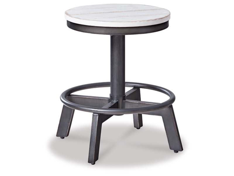 Make your home the hub for cool vibes with this stool. Its two-tone finish scheme of vintage white and aged gunmetal is full of urban industrial swagger. The stool's adjustable height is accommodating for you and your guests. Add it behind your sofa with a long counter table for a dapper eating or working space.