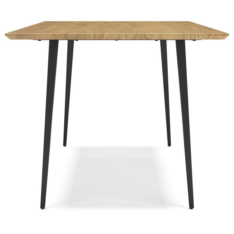 Casual lifestyle design with an Urban Vibe. Designed for small space dining areas but big on style. D501-25 rectangular dining table features a solid Acacia wood top with light natural wood finish and metal legs in a matte black powder coat finish for lasting durability. D501-02 dining chair has a classic wrap-around back design with simple tapered back slat and is made with solid hardwood.