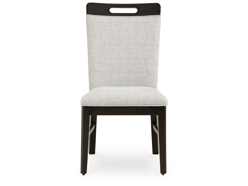 This dining chair set is the perfect blend of modern and contemporary styles. Its easy-clean Nuvella® upholstery remains vibrant and resists stains, while a fun and functional peek-a-boo handle keeps it relevant and on trend. Incorporating high style and low maintenance, this is a piece you’ll enjoy for years.