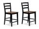 This set of 2 counter height bar stools dresses up your favorite farmhouse motifs with modern flair. A contoured butcher-block style seat keeps you comfortable and provides a ruggedly chic contrast to the sleek black frame.