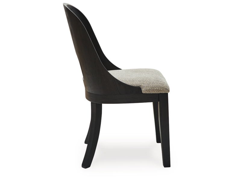 Inspired by art deco design, this dining chair makes a lasting impression in a simply stunning way. Its magnificent curved silhouette is enhanced with a rich layered black finish on the textured wood grain surface. The chair's ultra-sleek bent back is contoured for comfort, and the cushioned seat is wrapped in herringbone-patterned upholstery that’s so pleasing to the palate. This is the piece you’ve been seeking to elevate your contemporary decor whether you’re dining, listening to your latest playlist or binge-watching with friends.