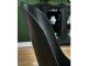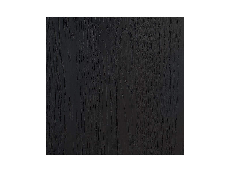 Contemporary lifestyle design. Made of hardwood solids and Oak veneer. Rich layered black finish on textured wood grain surface. Collection is inspired by Art Deco designs with trend-right curved silhouettes. Table features an oval design and architectural inspired table pedestal. Can seat up to 8 people. Dining chair features an ultra sleek bent plywood back for contoured comfort and a cushion seat covered in a herringbone patterned gray fabric. D821-02A fully upholstered bucket chair is made with engineered wood frames and covered with an ivory colored bouclé fabric. Set on casters for easy mobility. Server features 3 glass cabinet doors, interior shelving, rounded case design and tapered legs.
