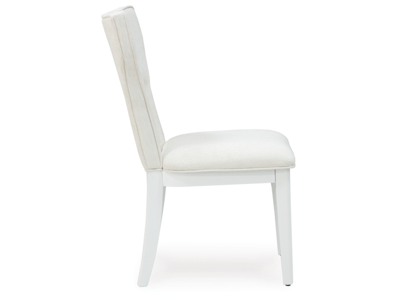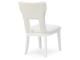 Embracing modern glamour, this dining chair set is a dazzling addition to your dining area. A bright white lacquer finish and a contemporary cutout design give it a look all its own. The sumptuous upholstery wows with metallic thread accents.