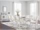 Embracing modern glamour, this dining room ensemble is a sparkling addition to your dining area. A bright white lacquer finish, shimmering rhinestone accents and clear glass panels give the extension table plenty of polish. Upholstered side chairs wow with metallic thread accents and a look all their own.
