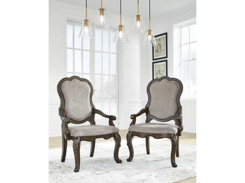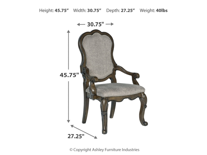 From the ornamental appliques to the large scale, this dining armchair makes a bold statement. With shapely legs and a plush cushioned seat and back, the opulent piece wows with stunning style. The look is timeless. The feel? Right at home.