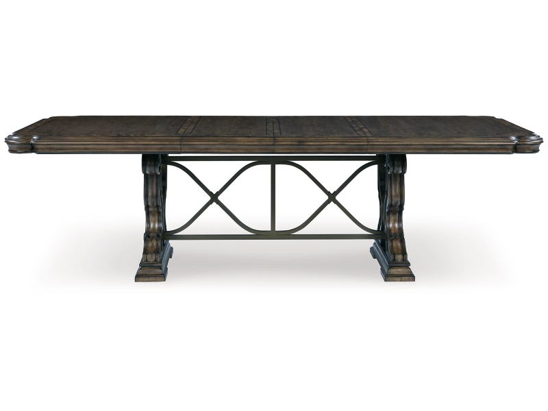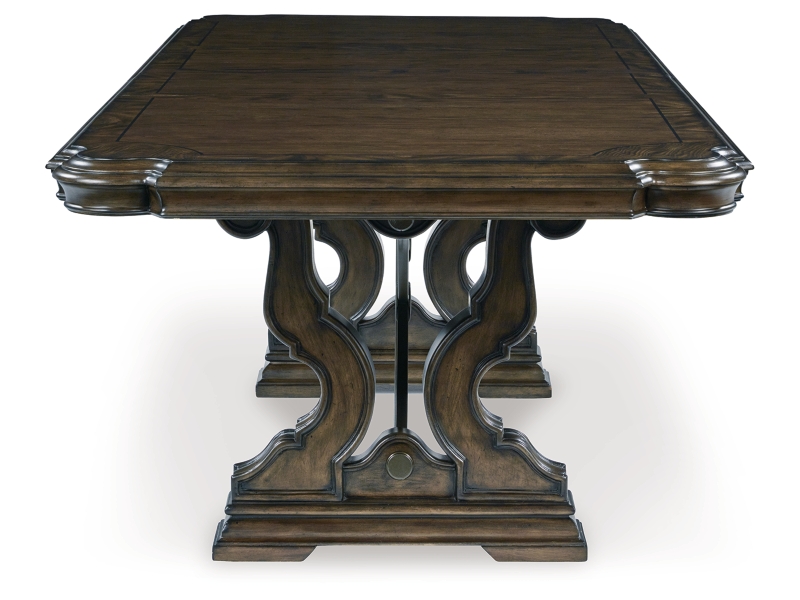 From its ornamental appliques to its large scale, this dining extension table makes a bold statement. With a shapely tabletop that sits upon a double pedestal base, the opulent piece wows with stunning style. The look is timeless. The feel? Right at home.
