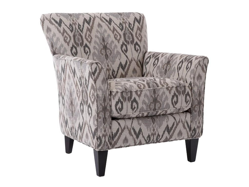 This stationary chair from Decor-Rest Furniture will make a statement in your chic living room. It features slightly flared arms, tight back cushion, padded seat cushion, and tapered wooden legs. This chair is upholstered in a Tabriz Taupe fabric.