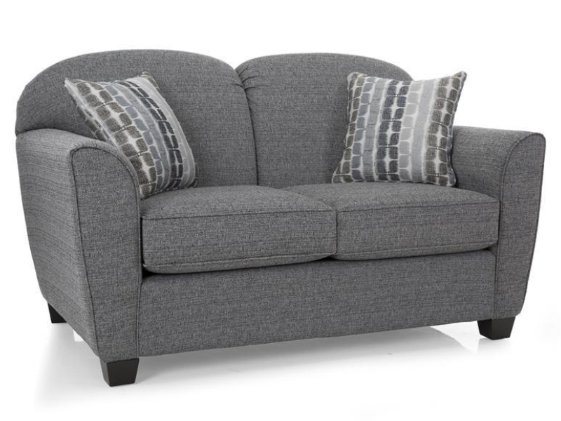 This 2317 Loveseat by Decor-Rest Furniture features a sinuous spring construction in a contemporary style with tight back and seat cushion with a box cushion design with self welt in the same forced charcoal fabric with tapered block feet in espresso finish.