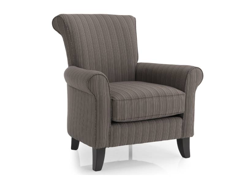 Chair with rolled back and rounded arms is perfect for a more traditional lifestyle. Curved wood legs on a reinforced hardwood frame provide a firm yet flexible support system.