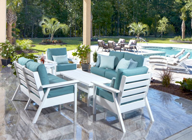 Sleek, modern and clean, this outdoor club chair frame is perfect for any outdoor space! Made of recycled plastics this chair is durable, comfortable and meant to withstand the outdoors.