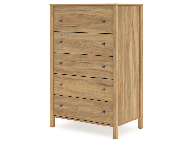 This chest of drawers puts the dream of a casual bedroom retreat beautifully within reach. A warm light brown finish over replicated hickory grain exudes a homey vibe. The smooth-gliding drawers are packed with storage possibilities. It’s a simply relaxed way to achieve the look you want to wake up to every morning.