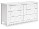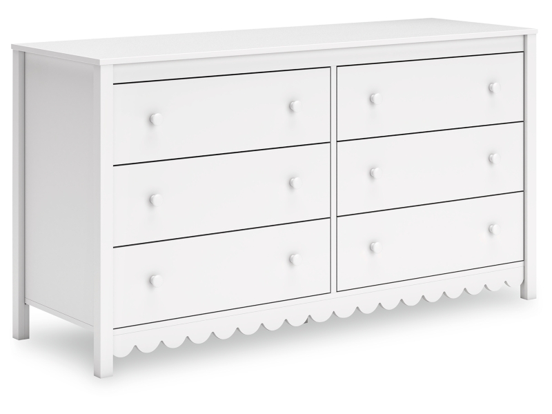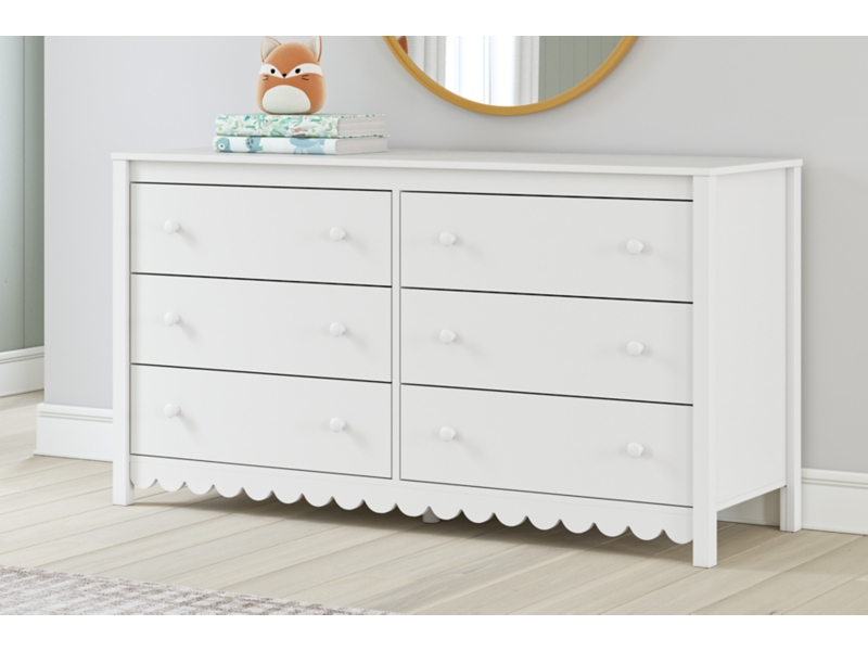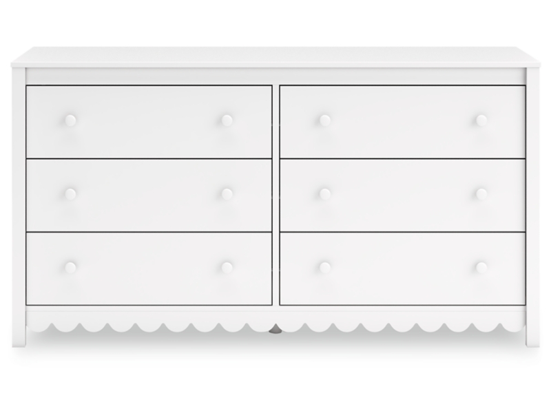 Thanks to its playful scalloped design, this dresser is the perfect fit for cottage or coastal farmhouse interiors. The matte white finish serves as the perfect backdrop to showcase your personal taste and creativity. And its spacious drawers let you say goodbye to clutter and hello to well-organized whimsy.