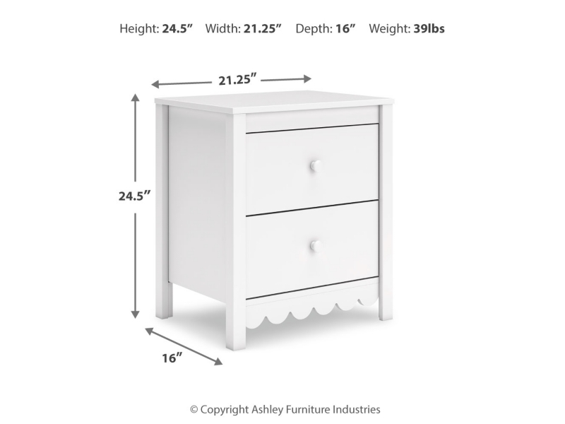 Thanks to its playful scalloped design, this nightstand is the perfect fit for cottage or coastal farmhouse interiors. The matte white finish serves as the perfect backdrop to showcase your personal taste and creativity. And its spacious drawers let you say goodbye to clutter and hello to well-organized whimsy.
