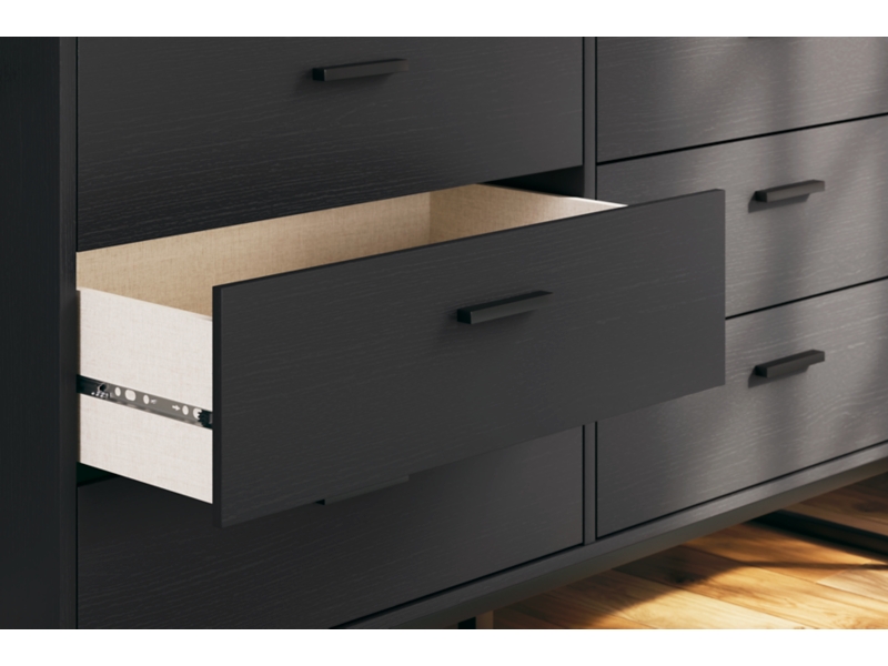 Warm and alluring, this dresser is inspired by chic design. A matte black finish and dark pewter-tone accents offer an elegant touch to the so-cool piece. It beautifully blends the hues of natural living with the edginess of your modern lifestyle.