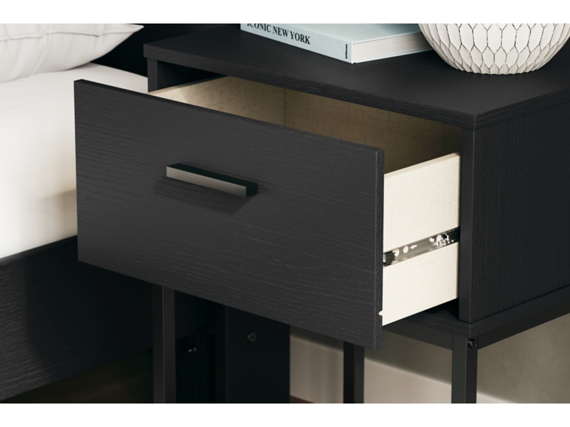 Warm and alluring, this nightstand is inspired by chic design. A matte black finish and dark pewter-tone handles offer an elegant touch to this so-cool piece. It beautifully blends the hues of natural living with the edginess of your modern lifestyle.