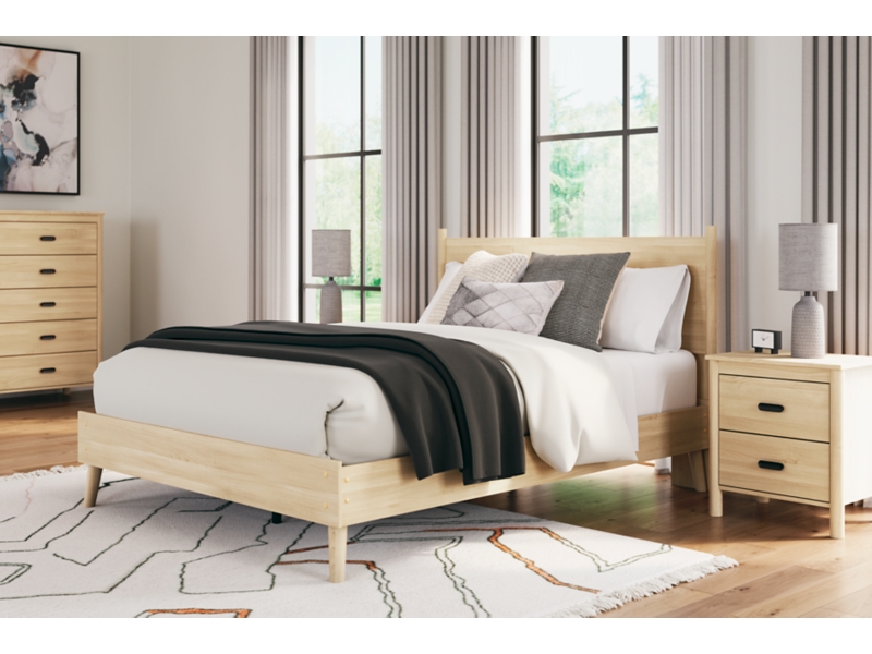 This queen platform panel bed brings on-trend style and a sense of serenity to the bedroom. It eliminates the expense of a foundation/box spring, allowing you to splurge on the mattress of your dreams (sold separately). Best of all, the natural wood finish and relaxed warmth complement any interior design.