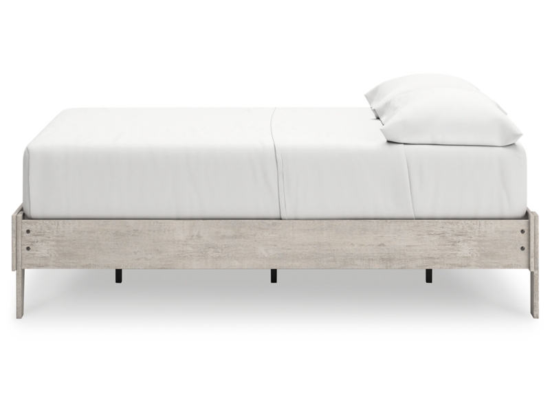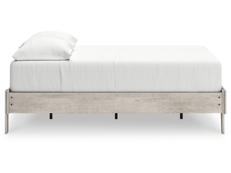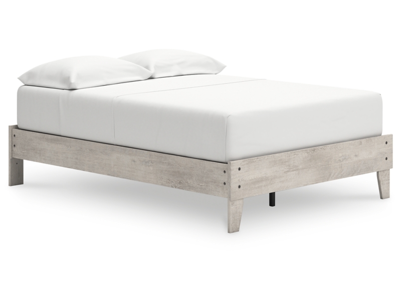 Give casual a new meaning with the chic look of this full platform bed. A light gray finish over replicated oak grain keeps it laid-back and inviting, as does its minimalist aesthetic. Talk about a delightfully relaxed vibe in your inner sanctum.
