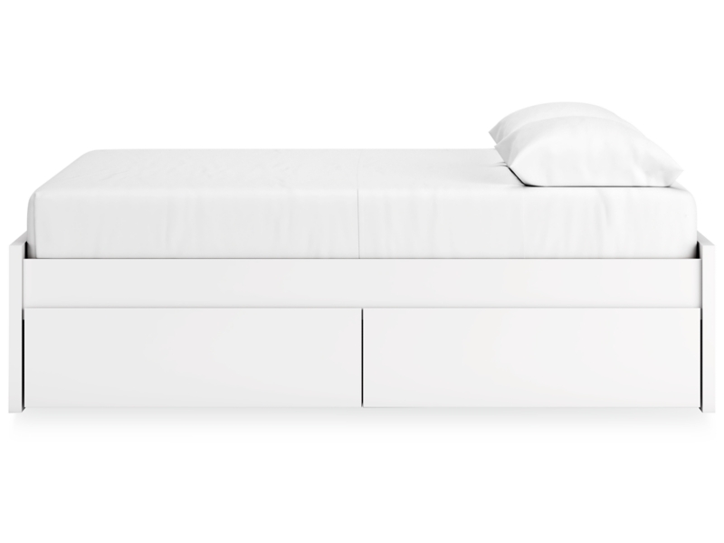 Solid white finish. Overlay and hardwareless drawers. Side roller glides offer a smooth opening and closing of the drawer. Spacious drawers with ball-bearing glides offer a smooth opening and closing of the drawer. Vinyl wrapped drawer sides and back for extra durability. Panel headboards (253,287,257) can attach to a bolt-on metal bed frame B100-21, B100-31 respectively. Platform bed panels (52,55,84) require the use of platform rails (89,95) (no additional foundation/box spring needed). Double drawer storage (260,261) rolls effortlessly under platform rails (89,95). Safety is a top priority, clothing storage units are designed to meet the most current standard for stability, ASTM F 2057 (ASTM International). Drawers extend out to accommodate maximum access to drawer interior while maintaining safety. Assembly required.