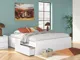 - Includes platform bed panels, platform rails, roll slats and 2 side storage drawers