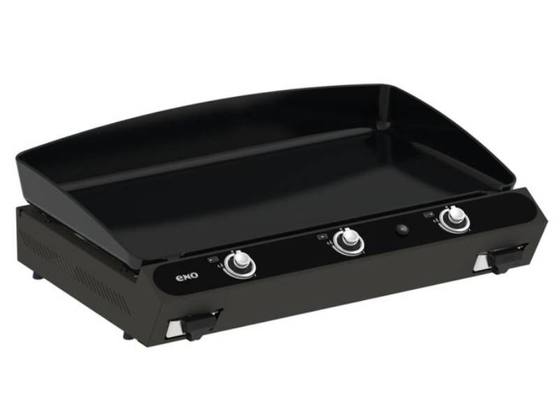 Cast enameled 3 burner gas plancha - Stainless steel frame