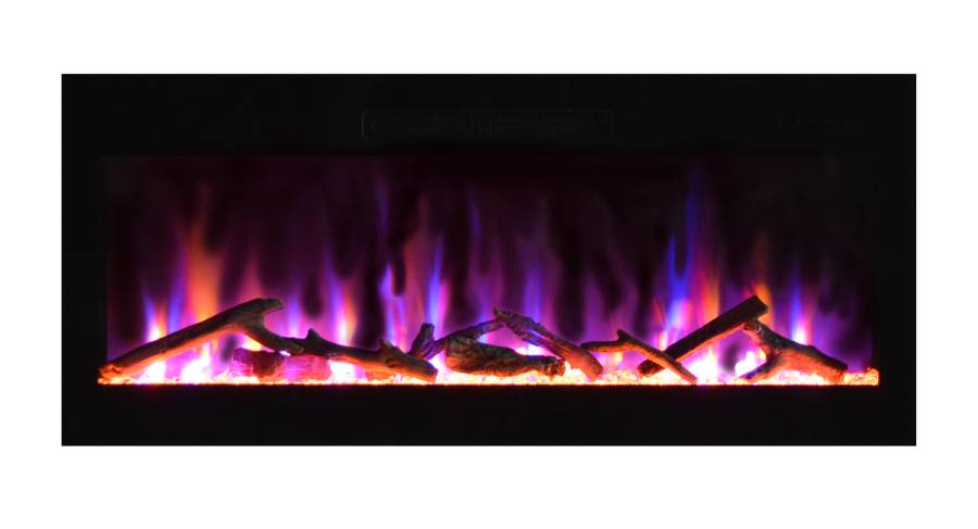 - The black, nearly frameless design of this modern linear electric fireplace creates a minimalist look that complements your décor while enhancing the visual appeal of the flames.