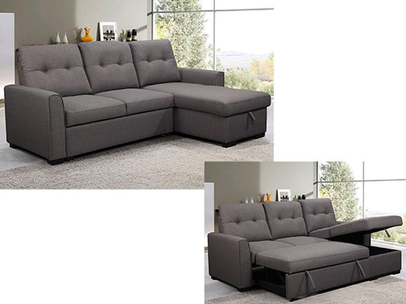 Fiorenzo5 contemporary multi-functional sectional and sleeper ensemble quickly and easily converts to large flat sleeping surface, with storage in the base of the chaise.