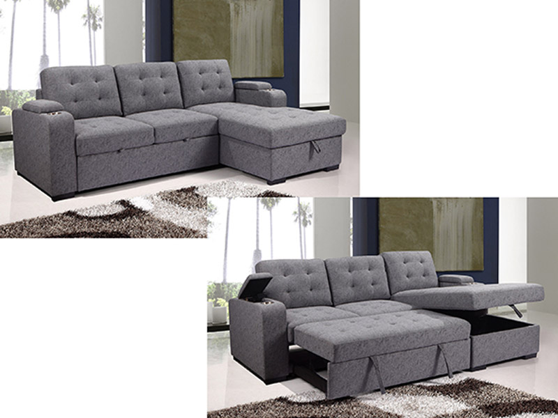 GianMaria3 contemporary multi-functional sectional and sleeper ensemble quickly and easily converts to large flat sleeping surface. Additional features include cupholders, and storage in armrests and base of chaise.