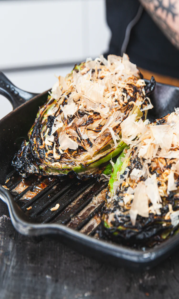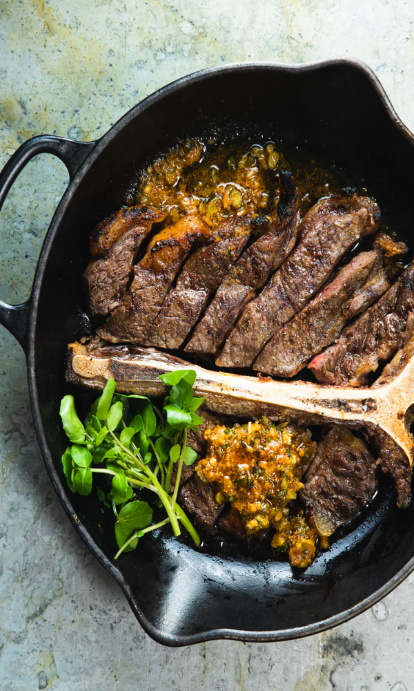 Live fire, an open door with a less intense flame can achieve totally different results. Fire up the oven to maximum temperatures and then allow it to drop below 550°F. This creates a slower roasting environment while retaining a unique dry heat. Ideal for cooking larger cuts of meat or fish. Charred on the outside and moist inside.