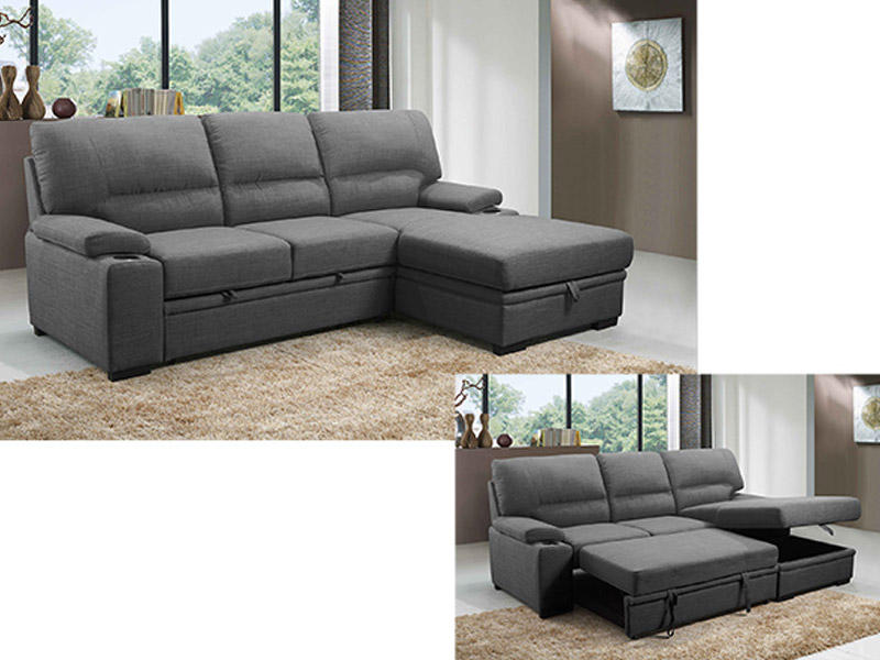 Guiseppe3 contemporary multi-functional sectional and sleeper ensemble quickly and easily converts to large flat sleeping surface. Additional features include pillow top arms, cupholders, and storage in the base of the chaise.