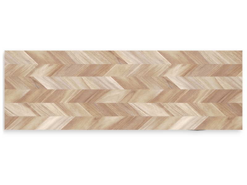 - Two-tone finish (dry, light finish over replicated oak grain; light chevron pattern)
