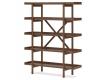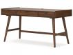 Casual Contemporary design. Made with Rubberwood solids, Mango wood veneer and MDF substrates. Finished in a medium brown natural wood tone. Desk drawers feature French/English dovetail construction, fully finished interiors and heavy duty ball-bearing side glides for durability and smooth function. Desk includes a cord hole in the top with a cord management raceway underneath to keep wires and power supplies tucked neatly out of sight. Matching bookcase with five 56" wide gallery shelves.
