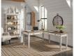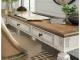 Elevating the art of traditional cottage styling, this desk return is your heavenly home office realized. Its antiqued two-tone aesthetic blends a chipped white with a distressed wood tone top for added charm. Framed drawer fronts, decorative corbels and elegantly turned and tapered legs add refinement, while dark bronze-tone knobs lend a classic touch.