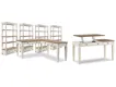 Made with Birch and White Oak veneers with Poplar solids. Two-tone finish featuring chipped white cases with distressed wood tone tops. L-desk configuration. The return can be removed to use the main desk alone. H743-34 and H743-134 desks have an AC power supply with (2) USB charging ports. Return desk features two drawers and cord management. Accent bookshelf has drawer storage and matching two-tone effect. H743-134 desk features an incorporated lift top mechanism for working at a standing position and is compatible with H743-34R.