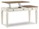 Made with Birch and White Oak veneers with Poplar solids. Two-tone finish featuring chipped white cases with distressed wood tone tops. L-desk configuration. The return can be removed to use the main desk alone. H743-34 and H743-134 desks have an AC power supply with (2) USB charging ports. Return desk features two drawers and cord management. Accent bookshelf has drawer storage and matching two-tone effect. H743-134 desk features an incorporated lift top mechanism for working at a standing position and is compatible with H743-34R.