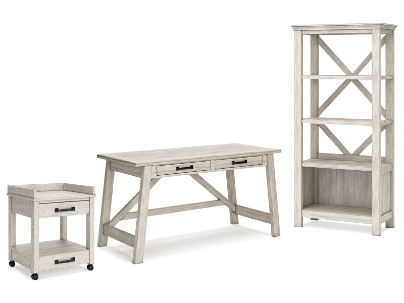 Looking for a fresh approach to modern farmhouse living? This home office desk with matching printer stand and bookcase works on so many levels. Two smooth-gliding drawers with dovetail construction reflect high quality that never goes out of fashion. Whitewash finish is a mastery in subtle sophistication.