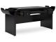 Contemporary lifestyle design. Made with hardwood solids, Oak veneer and MDF substrate. Rich layered black finish on textured wood grain surface. Desk is loaded with features such as 2 small drawers, a pull out keyboard tray, 2 utility bins, a 110V power supply with USB-A/USB-C charging ports and a cord management tray to keep wires neatly out of sight. Desk drawers feature French/English drawer construction, fully finished interiors and heavy duty ball-bearing side glides. 72" tall bookcase with 5 storage shelves.