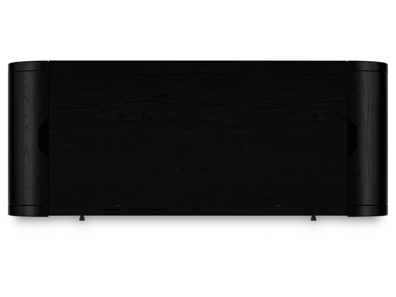 - Black finish on textured wood grain surface