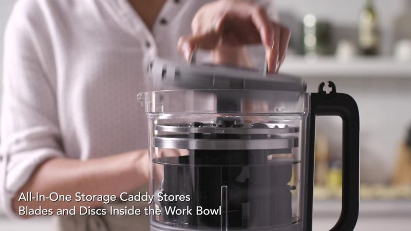 Store all blades and discs directly in the in-bowl storage caddy.