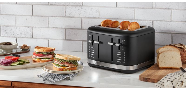 Make everyday simply delicious and easily toast your favourite breads, bagels and more with ease. This KitchenAid® 4 Slice Toaster features extra-wide slots to toast a variety of shapes and sizes, including homemade or craft breads. For added convenience the adjustable shade control, from light to dark, ensures you'll have your toast just the way you like it, every time. It's built to last and the durable metal design adds style to your countertop